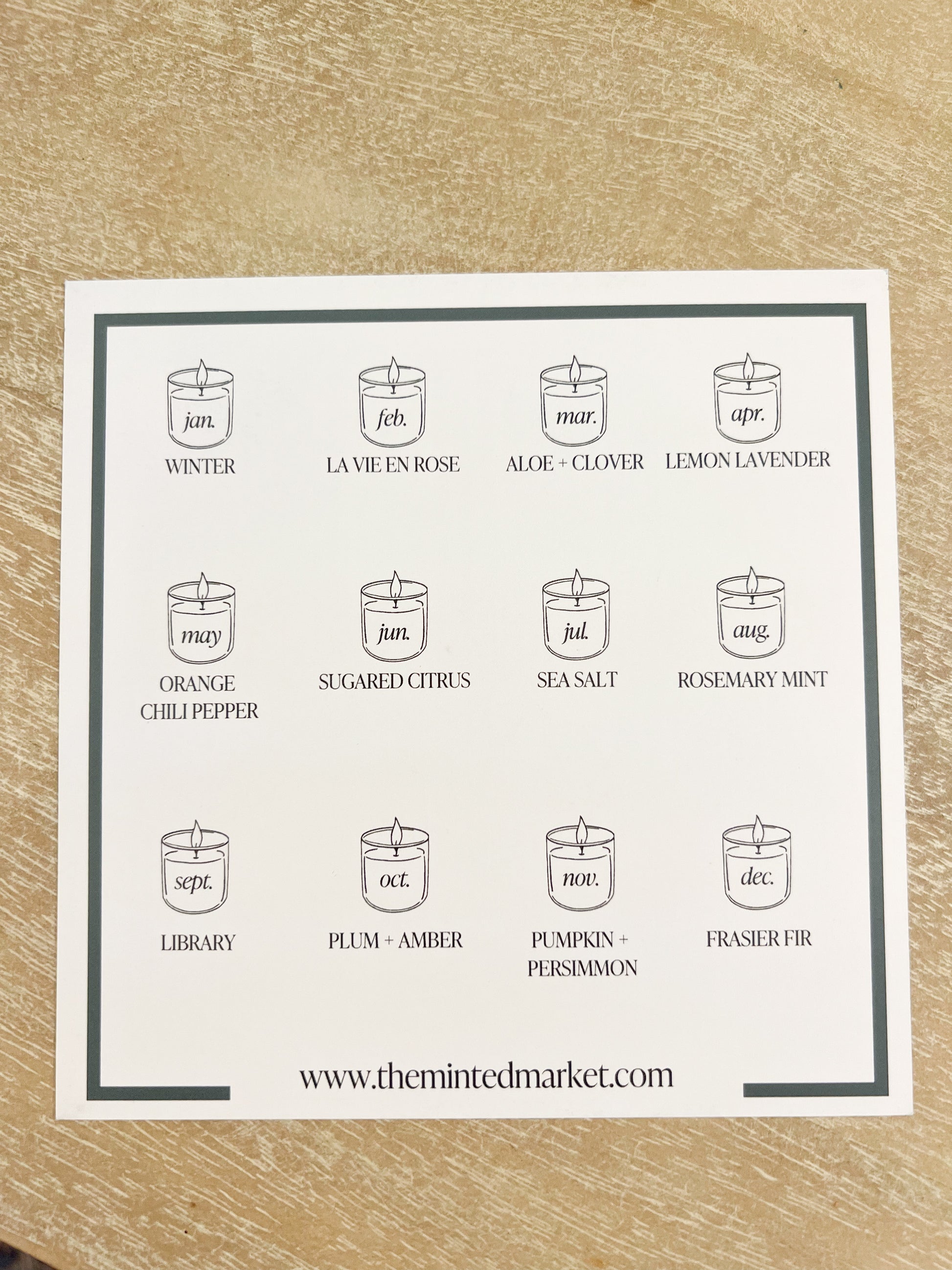 Each 2.5 oz jar is filled with a scent chosen to enhance the seasons throughout the year.